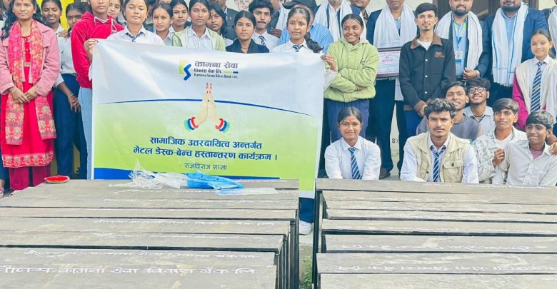 कामना सेवा विकास बैंकद्वारा राजविराजमा विद्यार्थीलाई मेटल डेस्क–बेन्च सहयोग