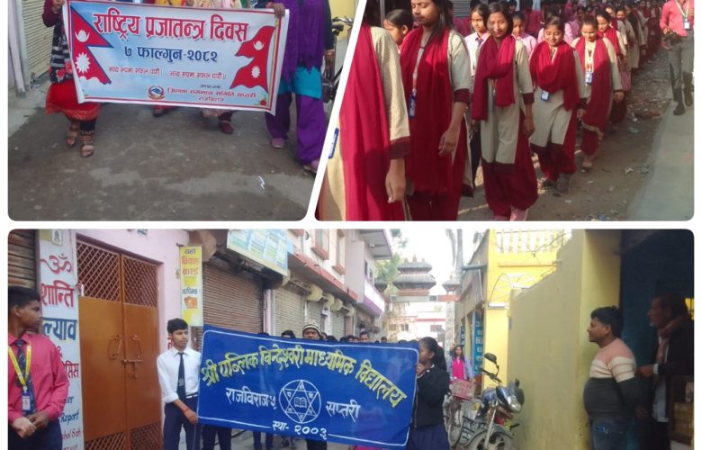 राजविराजमा प्रजातन्त्र दिवस भव्य रूपमा मनाइयो, लोकतन्त्र रक्षाका नाराले गुन्जायमान नगर