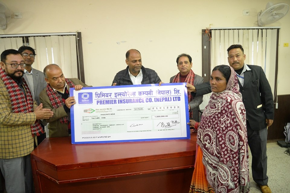 प्रिमियर इन्स्योरेन्स कम्पनि मे वीरगंज महानगर के सभी कर्मचारी के विमा भईल अवस्था मे उनकर मृत्यु भईला के बाद उ विमा दावी रकम बुनिलाल के मेहरारु फुलपति देवी के देहल गईल बा ।