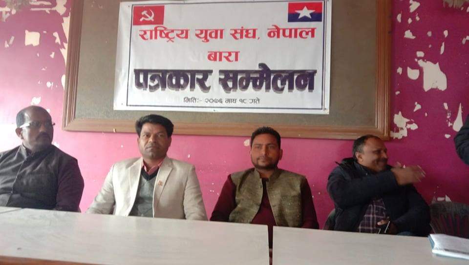 बारा के कलैया मे राष्ट्रिय युवा संघ नेपाल जिल्ला कमिटी प्रेस समेलन कर के चिनि कारखाना जनता आ पशुपक्षि मारे के काम कईल जनकारी करवले बा ।