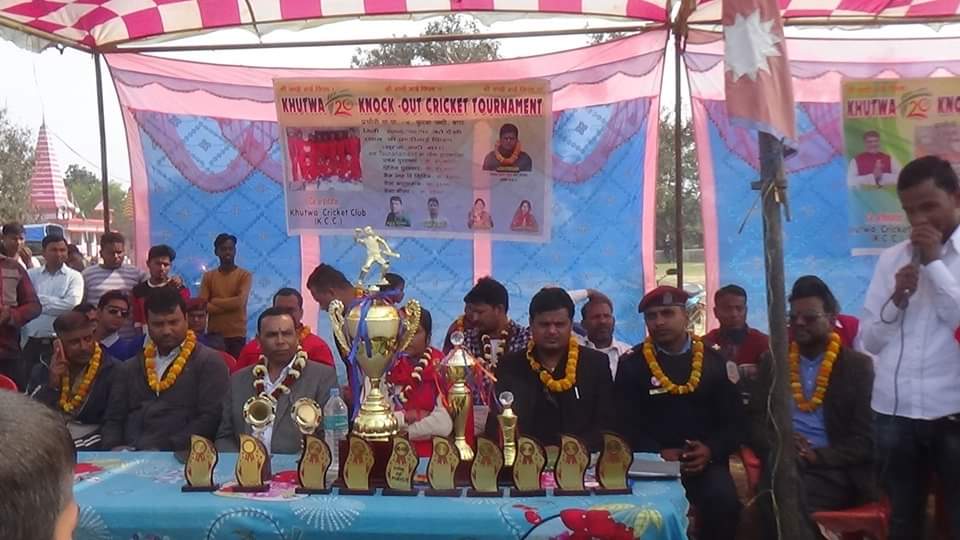 चण्डीमाई खेलमैदान मे वार्ड अध्यक्ष आन्नद गुप्ता बलिङ्ग करके आ गाँवपालिका अध्यक्ष भोला गुप्ता ब्याटिङ्ग करत नकआउट क्रिकेट प्रतियोगिता के उटघाटन कईले रहनी ।