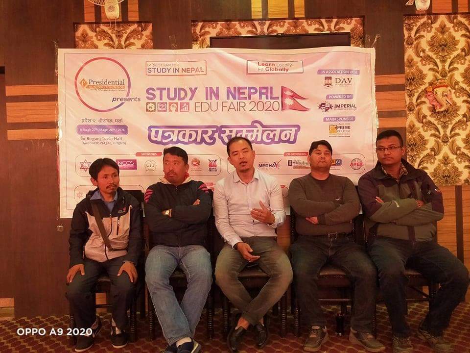 नगरसभा गृह मे आजु पत्रकार सम्मेलन के आयोजना करत मेला के सभी तइयारी पुरा भईल आयोजक जनवले बा । एजुकेशन डटकम के प्रमुख कार्यकारी अधिकृत जीवन लामा गोले के सभापतित्व मे भईल पत्रकार सम्मेलन मे नेपाल पत्रकार महासंघ पर्सा के अध्यक्ष श्याम बन्जारा बिदेशी कन्सलटेन्सीलोग अनेकन आकर्षक नारा के साथे अनेकन लोभ देखा के नेपाली विद्यार्थीलोग के ठगेवाला किसिम के शैक्षिक मेलासब हो रहल समय स्वदेश मे उच्च शिक्षा प्रदान करेके उदेश्य से आयोजित शैक्षिक मेला से गरीब, बिपन्न आ आर्थिक अवस्था कमजोर भईल विद्यार्थीलोग के भी समेटेके बात मे जोड देहनी ।