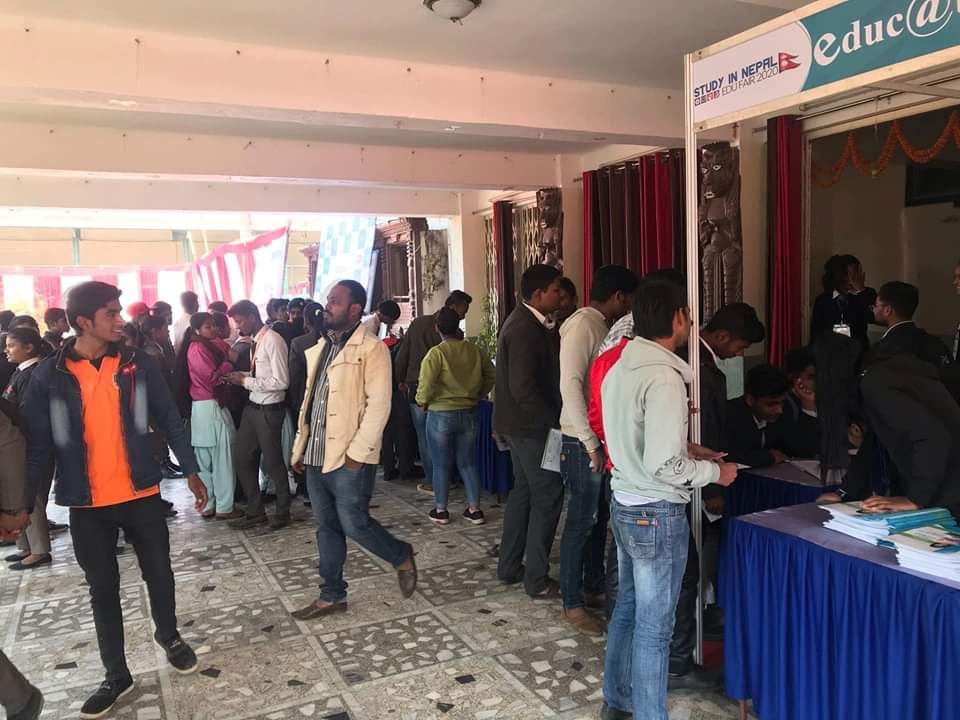 “स्वदेश मे शिक्षा, सभी के ईच्छा” कहके नारा के साथ आयोजना कईल शैक्षिक मेला के आजु पहिलका दिन १५ सय से बेसी विद्यार्थीलोग के निःशुल्क परामर्श देहल गईल मेला के व्यवस्थापक नविन कार्की बतवनी ।