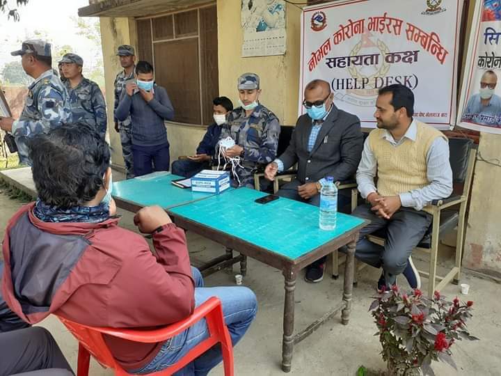 जिल्ला मे पहिलका बेर कोरोना भाइरस सम्बन्धी सचेतना मुलक हेल्प डेस्क स्थापना कईल सशस्त्र प्रहरी बल से अग्रसरता के प्रमुख जिल्ला अधिकारी फणिन्द्र मणी पोखरेल सराहना कईनी ।