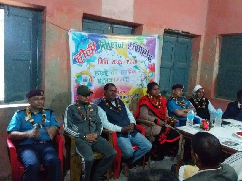 तराई के महान पर्व फगुवा भईला से एकरा से सभ्य आ भव्य रुपमे मनावे खातिर सभी से निहोरा कईले रहनी । एहितरे प्रहरी उपरिक्षक कृष्ण पंगेनी होली मिलन जवरजस्ती लोला मारेके, दारु पिके होहल्ला करेवाला क्रियाकलाप होखे ना देवेके प्रतिबद्धता जनवनी ।