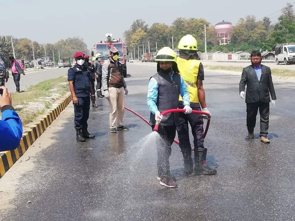 कोरोना भाइरस के सङ्क्रमण के महानगर क्षेत्र भितर फईले ना देवे खातिर किटनाशक दवाई छिटल सुरु कईल आ महानगर क्षेत्र के भीडभाड होखेवाला जगहासब, अस्पताल, सेवाग्राही बेसी आवेवाला सरकारी कार्यालय, लगायत के जगहासब मे किटनासक दवाई छिटल सुरु कईल मेयर पौडेल बतवनी ।