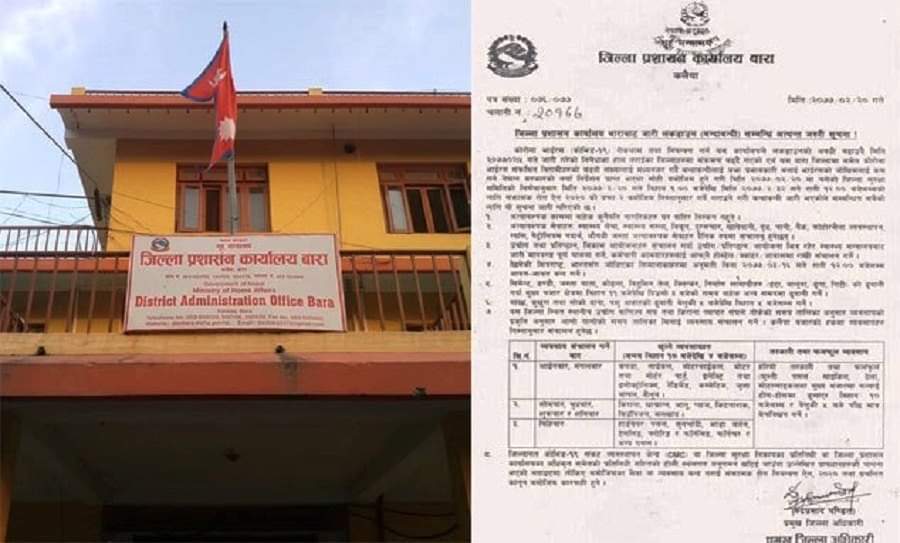 बियफे के दिने हार्डवेयर, सुनचाँदी, भाडा वर्तन, टेलरिङ्ग, प्लोरिङ्ग, फर्निसिङ्ग आ फर्निचर लगायत के दोकान खोलेके निर्देशन देहल बारा के प्रमुख जिल्ला अधिकारी रुद्र प्रसाद पंण्डित बतवले बानी ।