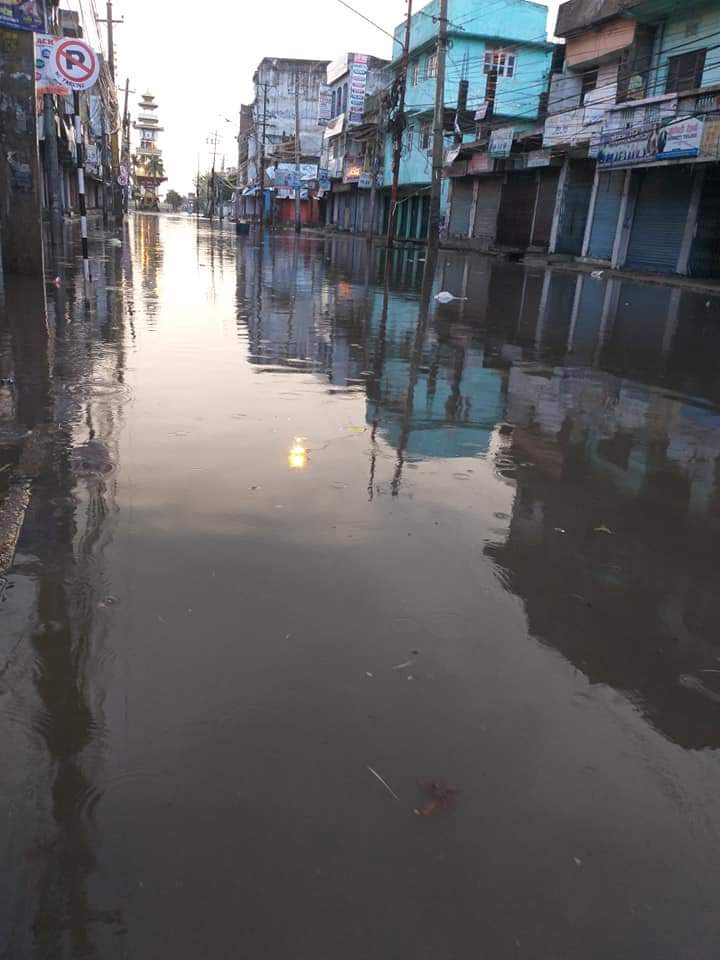 वीगञ्ज मे सबेरे एक घण्टा बरखा बरसला पर मेन रोड के अवस्था