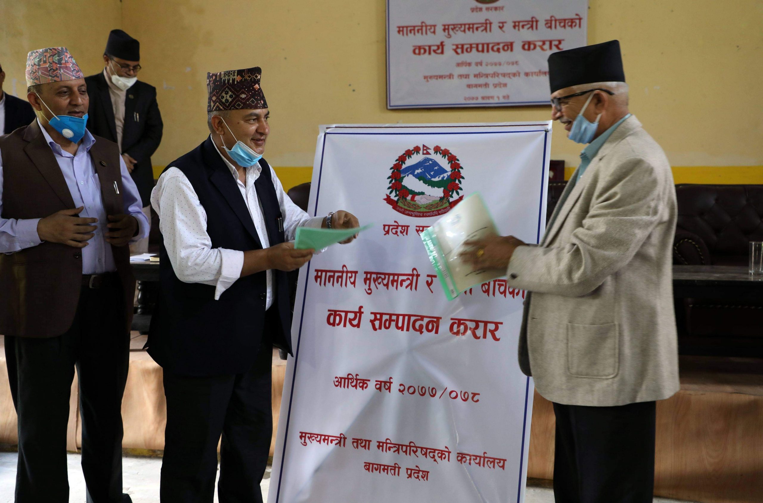 वाग्मती प्रदेश सरकार के मुख्यमन्त्री तथा मन्त्री के बीच मे आर्थिक बरीस २०७७÷०७८ मे पुरा करेवाला काम के खातिर कार्यसम्पादन करार सम्पन्न भईल बा ।