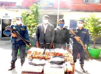 जिल्ला बारा फेटा गाँवपालिका वार्ड नं.१ त्रिवेणी के २८ बरीस के लालबाबु दास आ २७ बरीस के कन्हैया दास बस के पछाडीके डिक्की के भितर मर्चा के बोरा मे लुका छिपा के राख के लेजारहल अवस्था मे नागिन पटका ४० बण्डल, विष्फोटक पदार्थ बनावेवाला गन्दक जइसन भईल पियर पदार्थ एक किलो पाँच सय ग्राम आ सुहागा जईसन देखेवाला सफेद पदार्थ छव किलो नव सय ग्राम मिलल प्रवक्ता मिश्र जानकारी करावले बाडन ।
