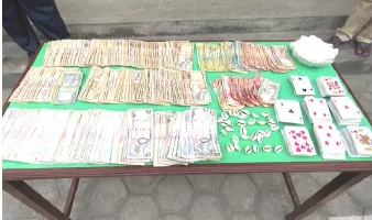 रात के समय मे घेराबन्दी कर के सर्च कइला पर होटेल के कम्पाउण्ड भितर पछाडी साइड मे रहल झोपडी मे से जुवा खेलेला काम लागेवाला म्याट, पाउडर, कौडी थान–१६ आ नगद पाच लाख ८२ हजार पाच सय ५० रोपेया सहित १० जने के प्रहरी कडले बा प्रहरी प्रवक्ता मिश्र जनकारी करावले बानी ।