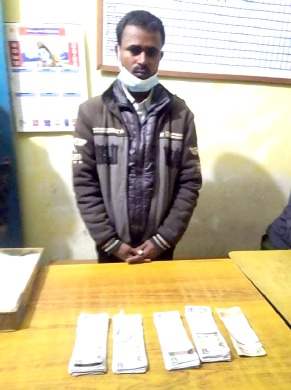 बारा के सिम्रौनगढ नगरपालिका वार्ड नम्वर २ हरिहरपुर से नक्कली नोट सहित एक जने पकडाई बाडे ।
