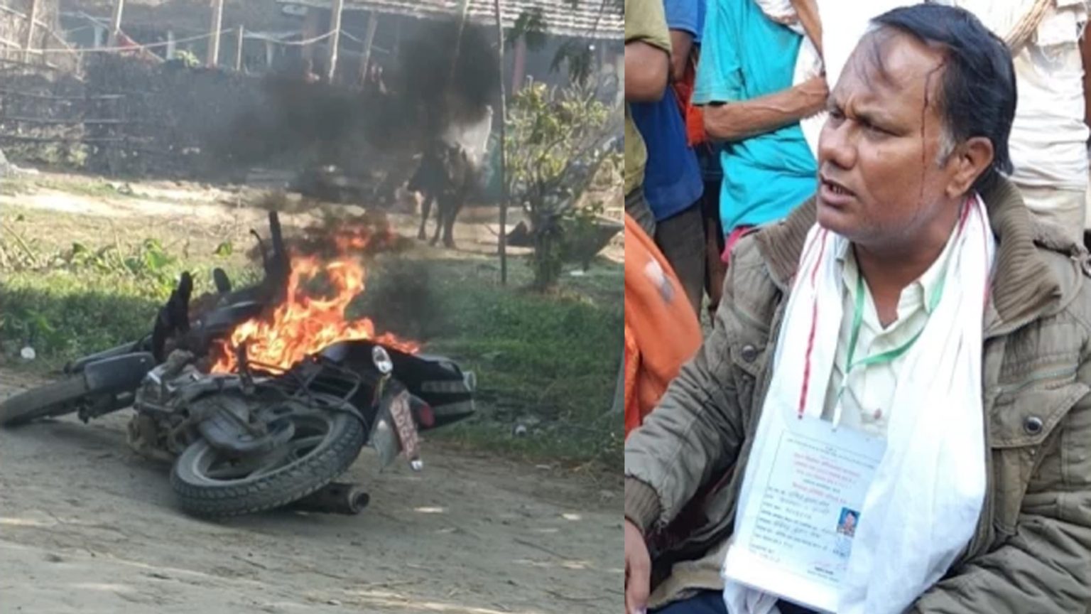 मण्डलको बा २५ प २०९२ नम्वरको मोटरसाइकलमा समेत आगजनी गरिएको जनाईएको छ। जसपाका नेता समेत रहेका यादवले गए राती देखिनै पैसा लिएर जसपालाई भोट हाल्न दवाव दिएका थिए । तर, स्थानीय गजेन्द्र मण्डलले उनको प्रश्ताव अस्विकार गरेका थिए । त्यसपछि उनलाई पनि कुटपिट गरिएको थियो।