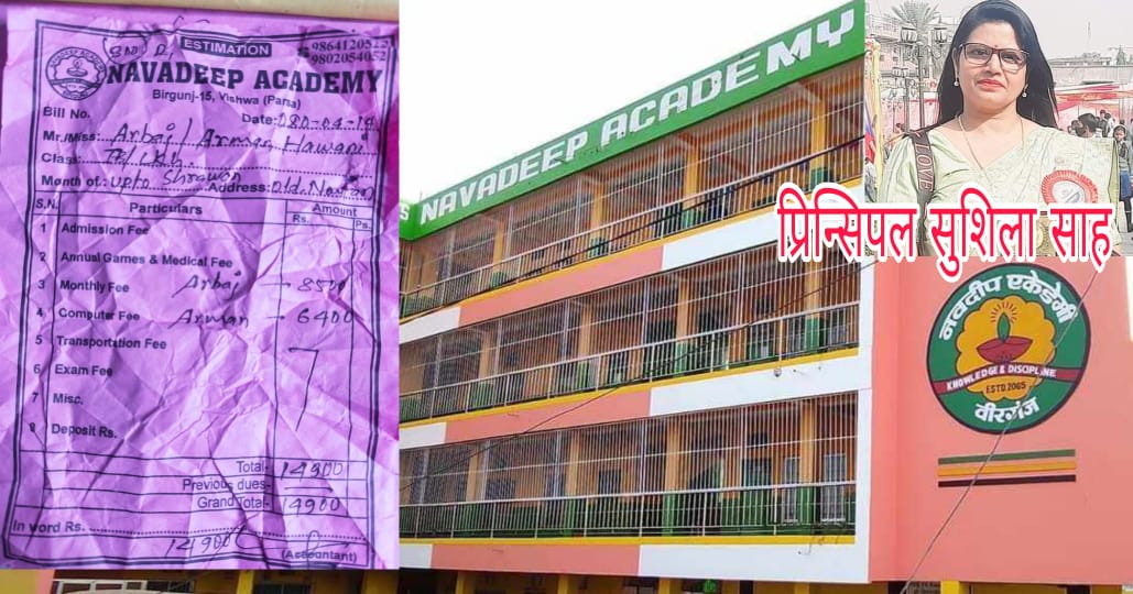 बारा जिल्ला प्रसौनी गाँवपालिका–३ नौतन रहेवाला सदाम हुसैन के दु गो बेटा नवदिप एकेडमी मे पढेलन । उनका के सावन महिना के १४ गते “UP to shrawan” के १४ हजार ९ सय के बिल विद्यार्थी मार्फत गारजियन के पठवले रहलन । उ बिल देखके गारजियन सदाम स्कूल मे पुग के प्रिन्सिपल सुशिला साह से बुझला पर पुराना आ सावन महिना के बिल अभी हि तिरेके पडि कहके दबाव देहले रहनी । बिल के पईसा ना बुझईला पर आपन बच्चा के ई स्कूल से निकाल के दोसर जगहा लेजाएके कहला के बाद बाध्य होके गारजियन सदाम उहे दिन ८ हजार रोपेया बुझवलें ।