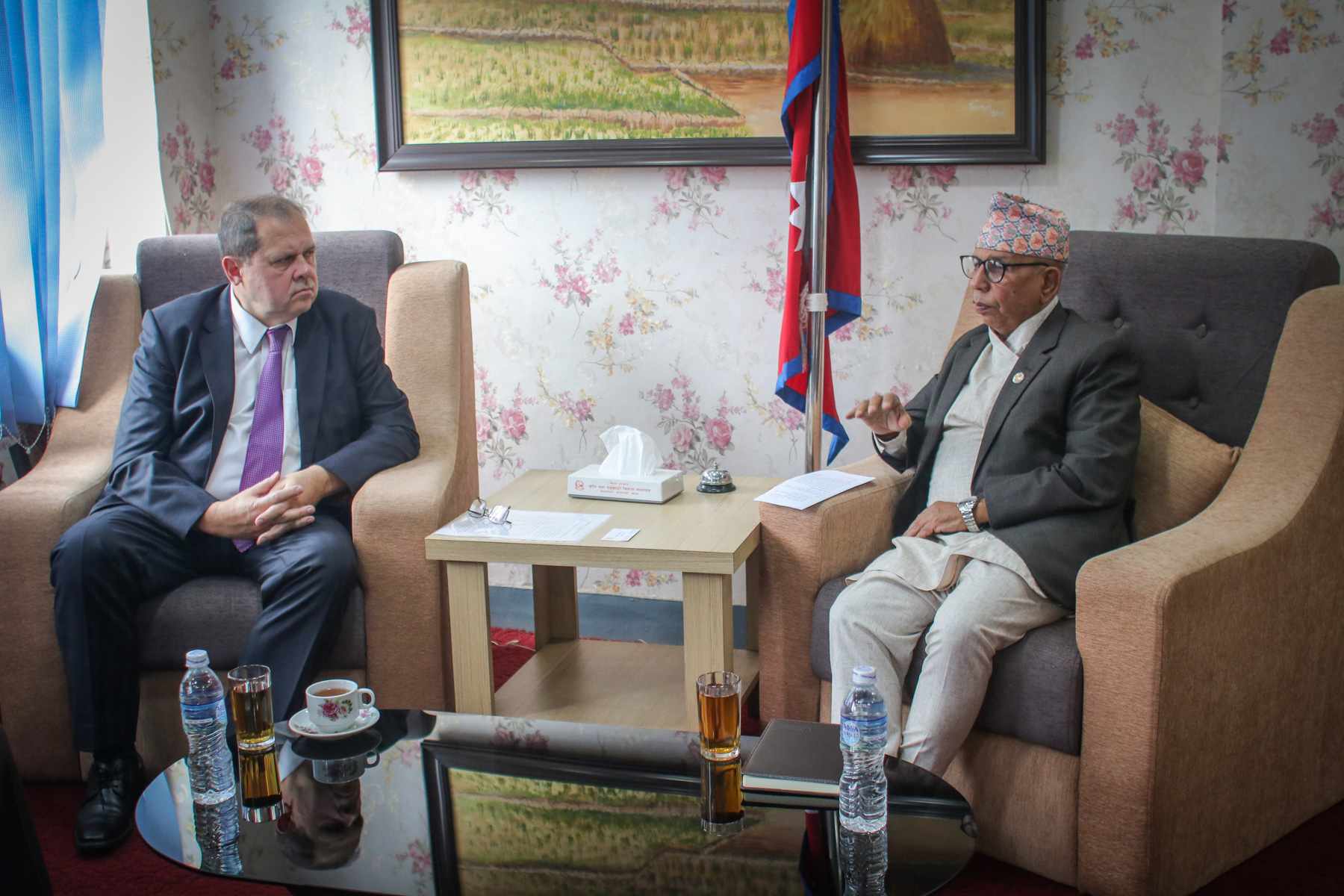 कृषि तथा पशुपन्छी विकास मन्त्री डा. बेदुराम भुसाल आ रसिया के राजदूत एलेक्सी नोभिकभ बीच शिष्टचार भेटघाट भईल बा ।