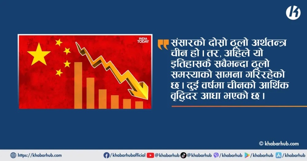चीन संसारको दोस्रो ठुलो अर्थतन्त्र हो। तर, अहिले यो इतिहासकै सबैभन्दा ठुलो समस्याको सामना गरिरहेको छ। गएका दुई वर्षमा आर्थिक वृद्धिदर आधा भएको छ। राष्ट्रपति सी चिन फिङले ल्याएको जिरो कोभिड नीतिका कारण महामारीपछि पनि चीन आन्तरिक र बाह्य व्यापारमा असफल भएको छ।