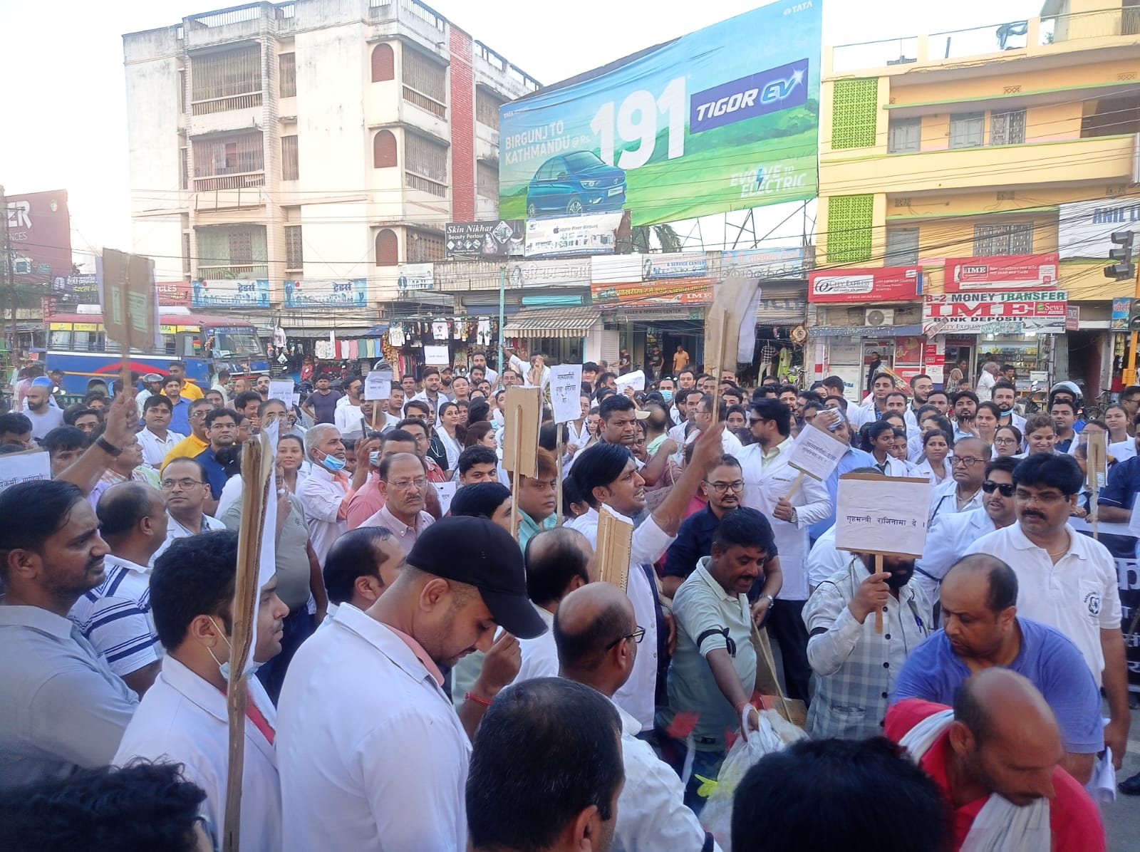 वीर्तास्थित मेडिकल एशोसियसन अफ नेपाल के नारायणी शाखा भवन अगाडि से निकलल चिकित्सकलोग के विरोध जुलुस नगर परिक्रमा करत घण्टाघर चोक मे पुगके कोणसभा मे परिणत भईल रहे ।