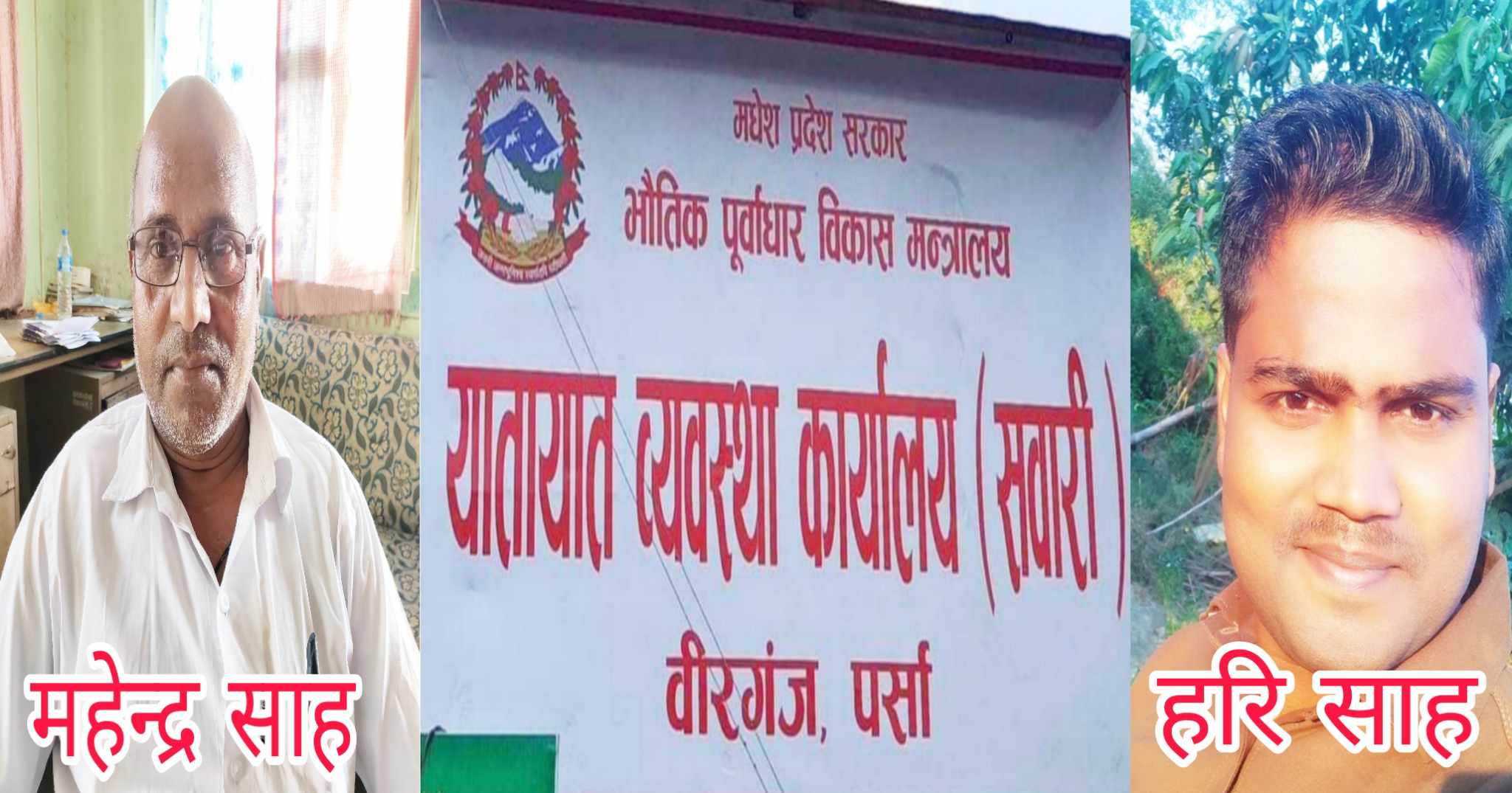 वीरगंज । यातायात व्यवस्था कार्यालय सवारी शाखा वीरगंजका कार्यालय सहयोगी महेन्द्र साह र उनका छोरा हरि साहले भ्रष्टाचार कार्यलाई बढावा दिदै आएको सेवाग्रहीहरुले बताएका छन् ।