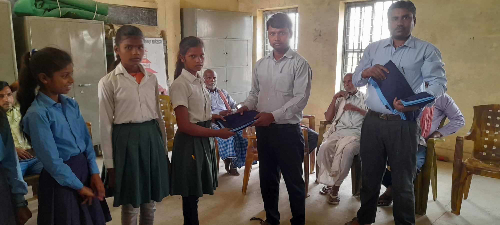बिहिवार विद्यालयमै आयाेजित कार्यक्रममा बिधालयको आफ्नै कोषबाट रकम निकासा गरि बाल विकास देखि कक्षा ८ सम्मका ९८ जना विद्यार्थीहरुलाई स्कुल ड्रेसको लागि कपडा वितरण गरिएको यस बिधालयको ब्यवस्थापन समितिका अध्यक्ष मुकेश कुमार चौरसियाले जानकारी गराए ।