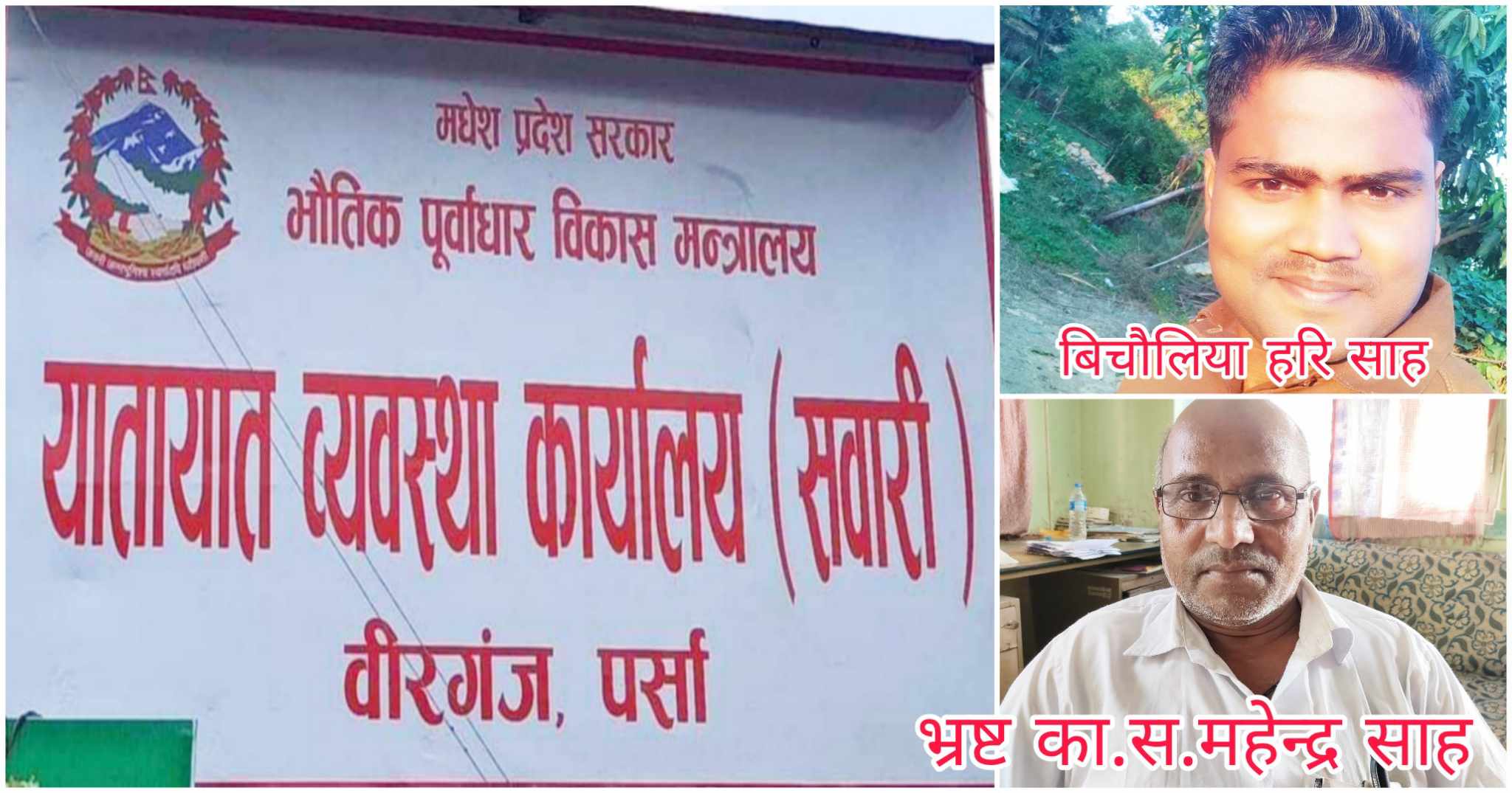 वीरगंज । यातायात व्यवस्था कार्यालय सवारी शाखा वीरगंजका बिचौलिया हरि साह भन्ने हरिवंश प्रसाद गुप्ता र उनका बुवा कार्यालय सहयोगी महेन्द्र साहको कालाकर्तुतको बारेमा यस अनलाईनमा पटक–पटक समाचार प्रकाशित भए पछि हरिले पुनः बिहिवार सामाजिक सञ्जाल फेसबुकमा कमेन्ट गरेका छन् ।