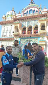 मन्दिरमा आउने भक्तजनलाई तुलसीको बिरुवा वितरण