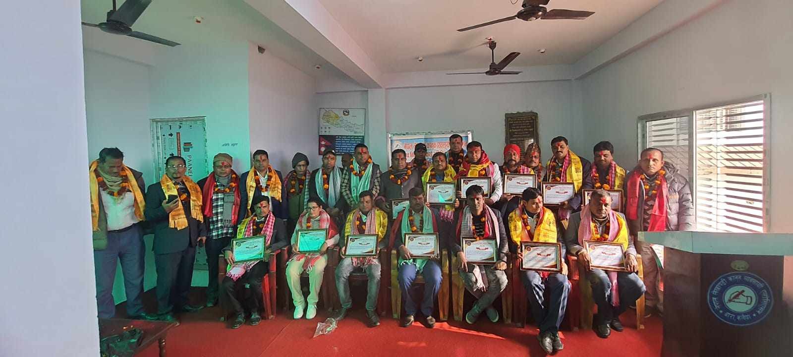 निर्वाचन समिति के संयोजक अधिवक्ता यादव नवनिर्वाचित अध्यक्ष बृजकिशोर यादव उर्फ भगतजी, उपाध्यक्ष शिवपुजन ठाकुर। सचिव दिनेश प्रसाद पटेल, सह–सचिव बिनोद कर्ण, कोषाध्यक्ष प्रमानन्द प्रसाद पटेल, सह–कोषाध्यक्ष दिनेश कुमार मण्डल, सदस्य केशव प्रसाद यादव, सुनिता कोइराला, उपेन्द्र पसवान, नरेन्द्र तिवारी, रामनिवास ठाकुर, राम नरेश साह कानु, आ लक्ष्मन प्रसाद यादव के पद आ गोप्नीयता के सपथ खिया के कार्य भार सुरू करावले बानी । एसोसिएसन के ९ वाँ अधिवेशन से सभे जने सर्बसहमत से चयन भईल रहनी ।