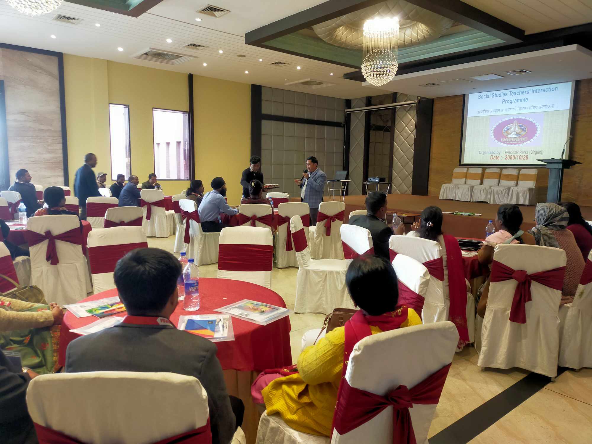 होटल भिस्वा वीरगंजमा प्याब्सन वीरगंज र प्याब्सन पर्साको संयुक्त आयोजनामा दुई शत्रमा अन्तरक्रिया तथा प्रशिक्षण कार्यक्रम सम्पन्न भएको हो । बिहान ८ः३० बजे देखि पहिलो शत्रमा प्याब्सन अन्र्तगतका ४३ वटा स्कूलका कक्षा १ देखि ३ सम्म अध्यापन गराउने ४५ जना सामाजिक विषयका शिक्षक÷शिक्षिकाहरुको सहभागिता रहेको थियो भने दिउँसो १२ः३० बजे देखि कक्षा ४ देखि १० सम्मका ९० जना शिक्षक शिक्षिकाहरुको सहभागिता रहेको प्याब्सन वीरगंज महानगर अध्यक्ष आलोक चौरसियाले बताए ।
