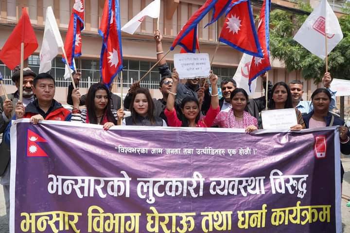 काठमाडौं । आम जनता पार्टी (आजपा) निकटको आम सम्पर्क मञ्चले शुक्रबार आठौं दिन पनि काठमाडौंको त्रिपुरेश्वर स्थित भन्सार विभाग घेराउ तथा धर्ना दिएको छ । भन्सार कानुनमा रहेको कथित ४५ प्रतिशत पुरस्कारको लूटकारी प्रावधानको व्यवस्था हटाउनुपर्ने लगायतका माग गर्दै मञ्चले भन्सार विभाग घेराउ एवं धर्ना दिदै आएको छ ।