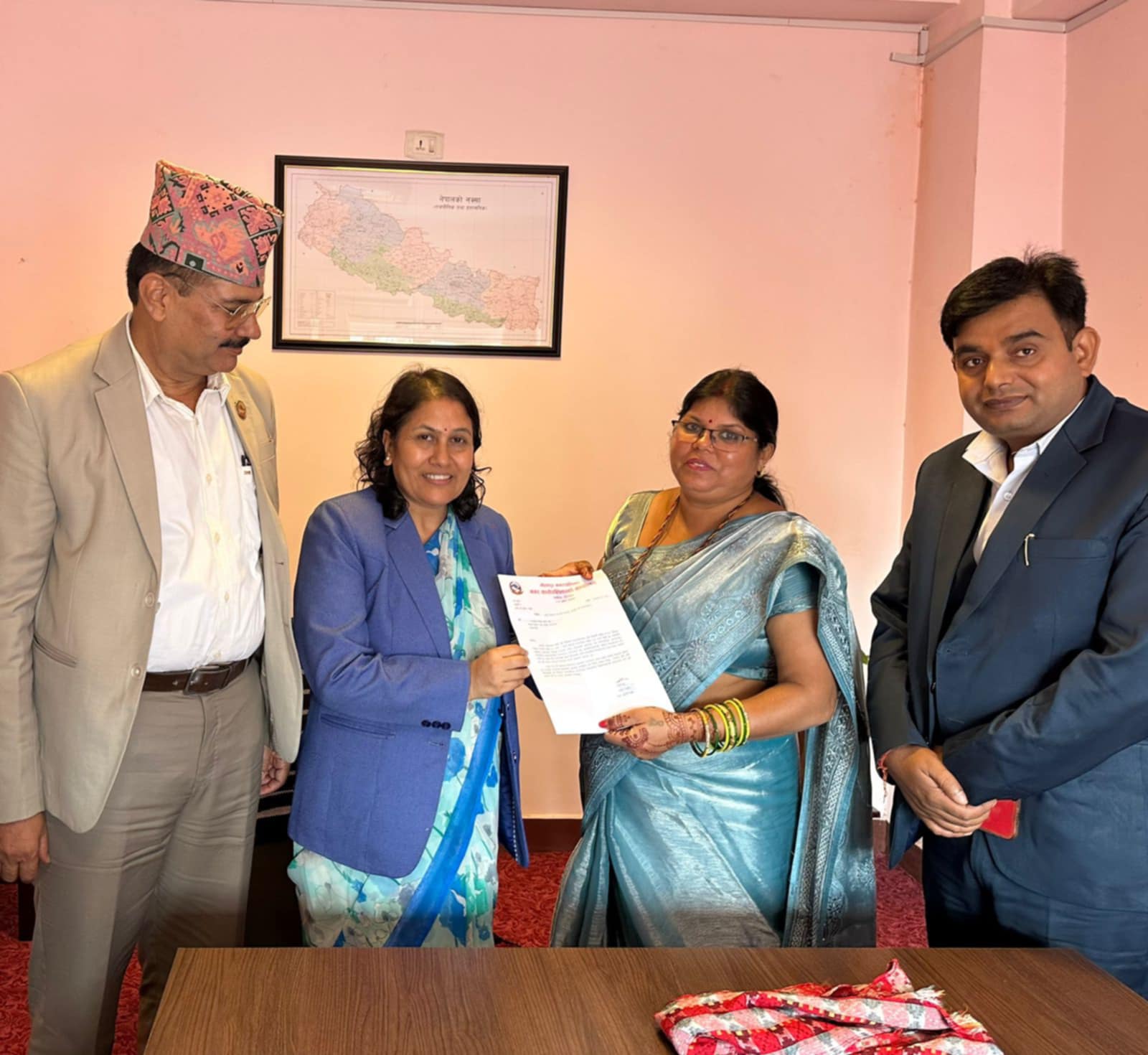 बिधार्थी संख्याको अनुपातमा शिक्षकको माग गर्दै मौलापुरकी मेयर साहले शिक्षा मन्त्री भट्टराईलाई बुझाईन ज्ञापनपत्र