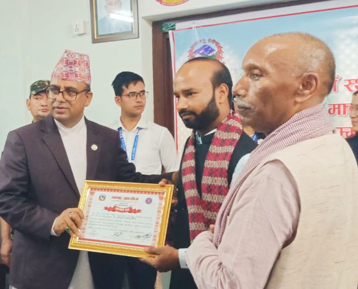 भाषा आयोग के कार्यालय सङ्खमूल, काठमाण्डु मे आयोजना कईल कार्जक्रम मे पत्रपत्रिका मार्फत भाषा, संस्कार, संस्कृति के जगेर्ना करे खातिर टेवा पुगावल कहत पत्रपत्रिका के सम्मान कईले बा ।