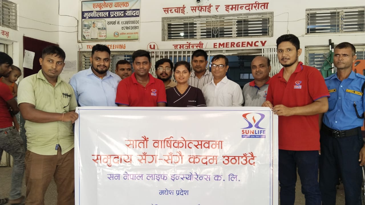 सन नेपाल लाइफ इन्स्योरेन्स कम्पनीको ७ औं बार्षिकोत्सवको अवसरमा आईतवार प्रादेशिक अस्पताल कलैयामा फलफूल वितरण गरिएको छ ।