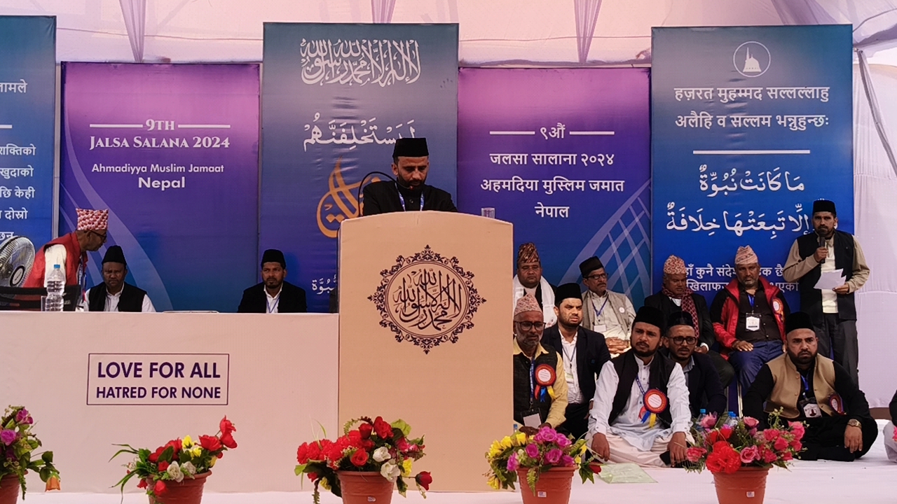 धर्मको कुनै भेदभाव नगरिकन मानव जातिको सेवा गर्नु यस जमाअतको मूख्य कार्य हो । जमाअत अहमदियाले संसारमा धर्मको नाममा भइरहेको उपद्रवको तथा राजनितीको समर्थन गर्दैन । धर्मको अर्थ केवल अध्यात्मिकता तथा अल्लाह तआलाको प्रेम प्राप्त गर्नु हो । अहमदिया जमाअतले हिंसा,अन्याय र आतंकलाई समर्थन गर्दैन । कार्यक्रमको संचालन अहमदिया संघ नेपालका हासिम अहमदले गर्नु भएको थियो।