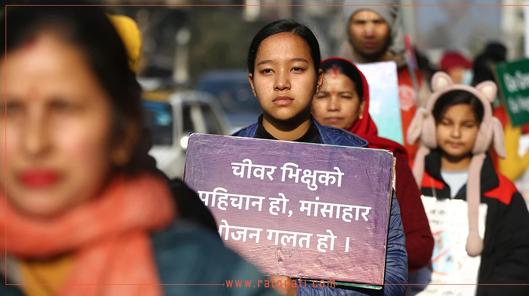 काठमाडौँ । नेपाल र चीनबिच भएको भैँसीको मासु निर्यातसम्बन्धी सम्झौताको विरुद्धमा विभिन्न संघ संस्थाले शनिबार विरोध प्रदर्शन गरेका छन् । अहिंसा परमोधर्म भन्दै उनीहरूले शान्तिपूर्ण पद यात्रा गरेका हुन् ।