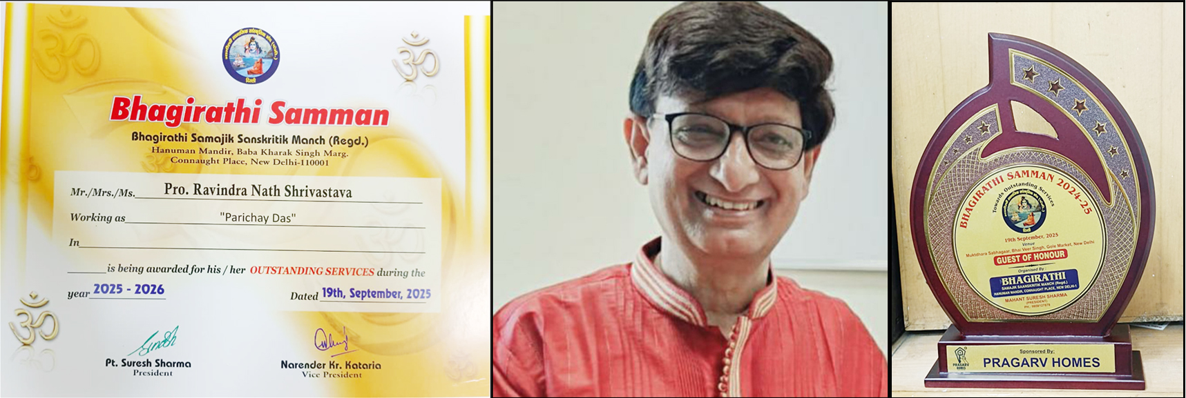 प्रो. रवीन्द्र नाथ श्रीवास्तव ‘परिचय दास’ के ‘भागीरथी सम्मान’ दिहल गइल बा। ई सम्मान उनकरा के साहित्य आ कला के क्षेत्र में उत्कृष्ट योगदान खातिर दिहल गइल बा।