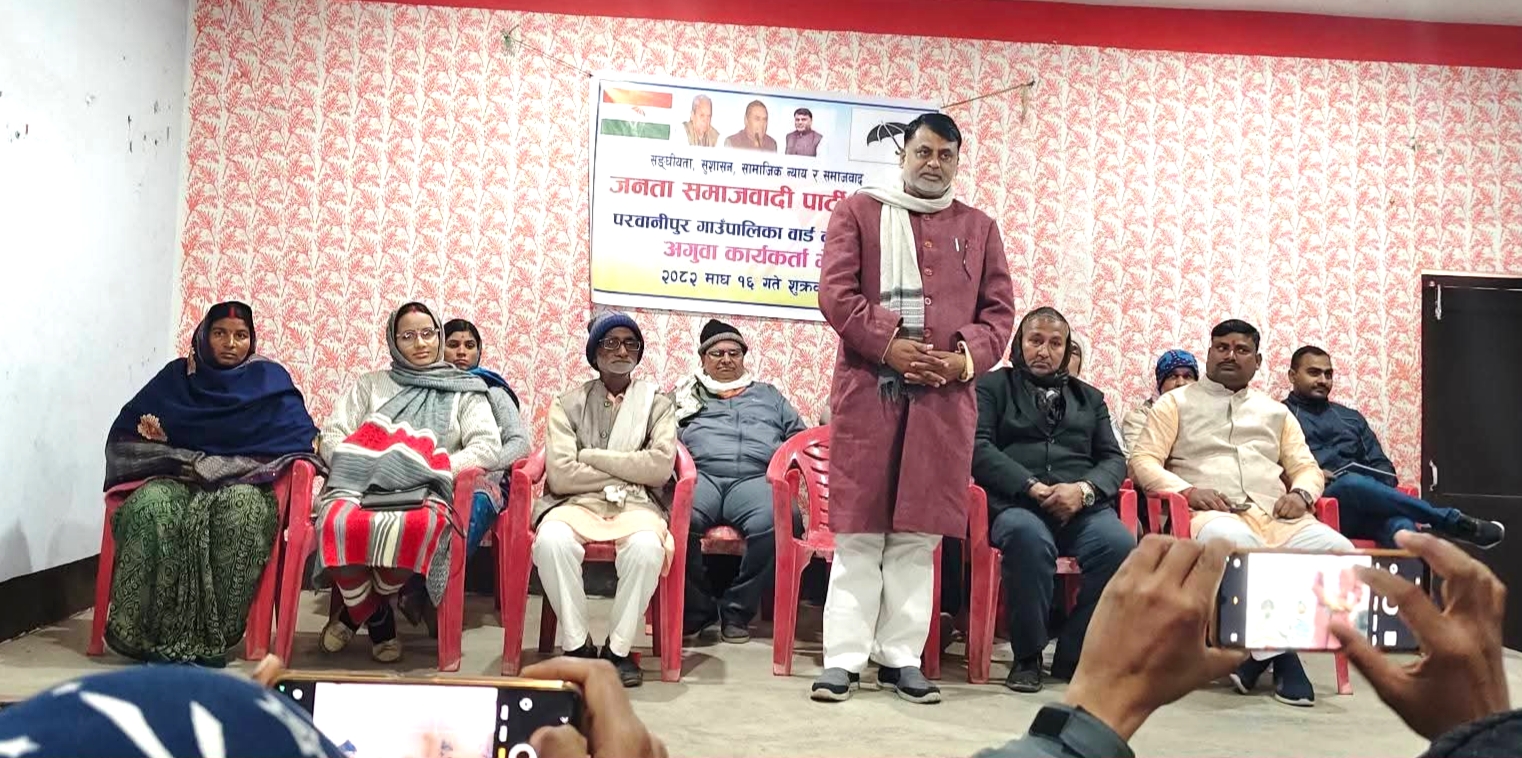 बारा जिल्लाको परवानीपुर गाउँपालिका वडा नम्बर–५ बहुअरीमा जनता समाजवादी पार्टी नेपाल (जसपा) ले आज अगुवा कार्यकर्ता भेला आयोजना गर्दै आगामी निर्वाचनलाई लक्षित संगठनात्मक सक्रियता तीव्र पारेको छ।