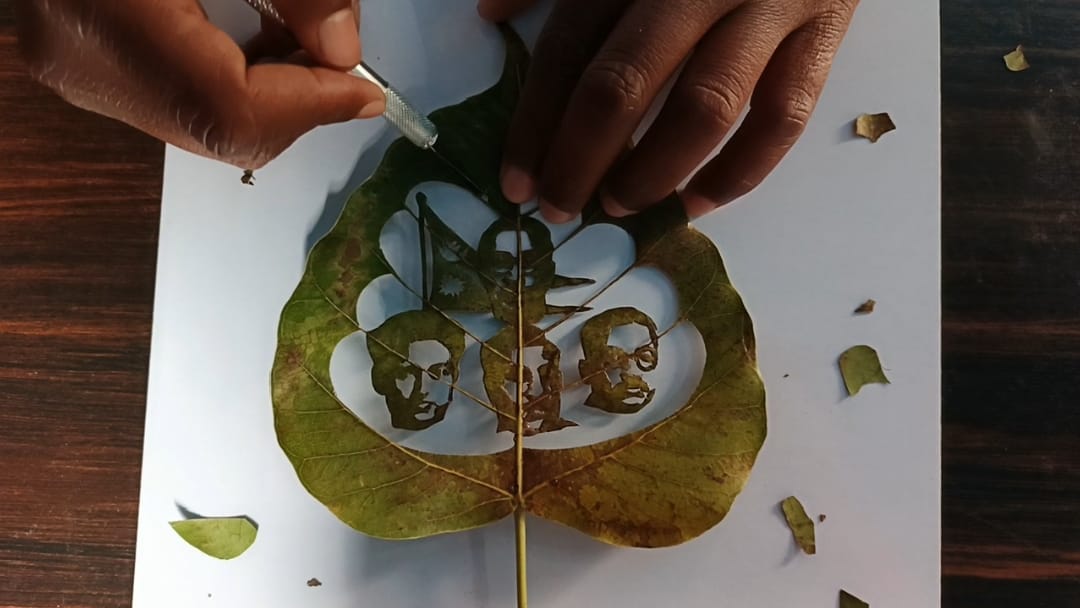 पाँच घण्टाको साधनापछि उनले संसारकै सानो हरियो पीपलको पातमा वि.सं. १९९७ मा लोकतन्त्रका लागि बलिदान दिएका शुक्रराज शास्त्री, धर्मभक्त माथेमा, गंगालाल श्रेष्ठ र दशरथ चन्दको स्मृतिलाई सूक्ष्म कलाकृतिमार्फत जीवन्त बनाएका हुन्। कलाकृतिमा नेपाली राष्ट्रिय झण्डासहित ‘माघ १६ जय नेपाल’ र ‘शहीदलाई सलाम’ सन्देश अंकित गरिएको छ।