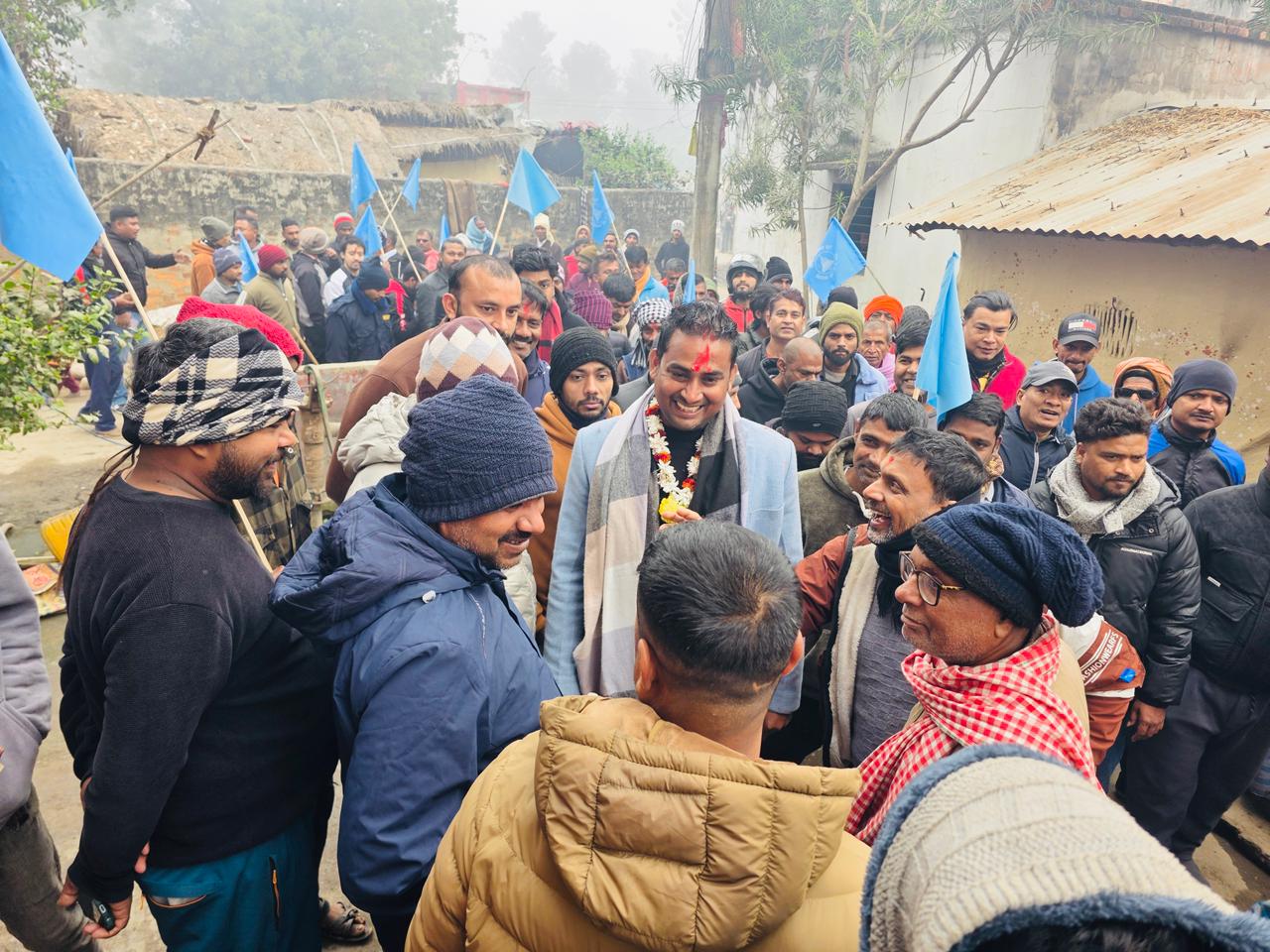 शुशिल साह कानुद्वारा वीरगञ्ज–१ मा बिहानै घरदैलो अभियान