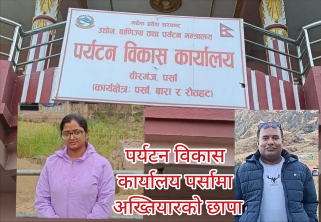 पर्यटन विकास कार्यालय पर्सामा अख्तियार दुरुपयोग अनुसन्धान आयोगको टोलीले छापा मारेको छ। कार्यालय प्रमुख बबिता जयसवाल तथा लेखापाल सुबोध यादवको मिलोमतोमा कार्यालयमा भएको अनियमितता र भ्रष्टाचारसम्बन्धी उजुरीको आधारमा अख्तियारको टोलीले आज बिहान आकस्मिक रूपमा छानबिन थालेको हो।