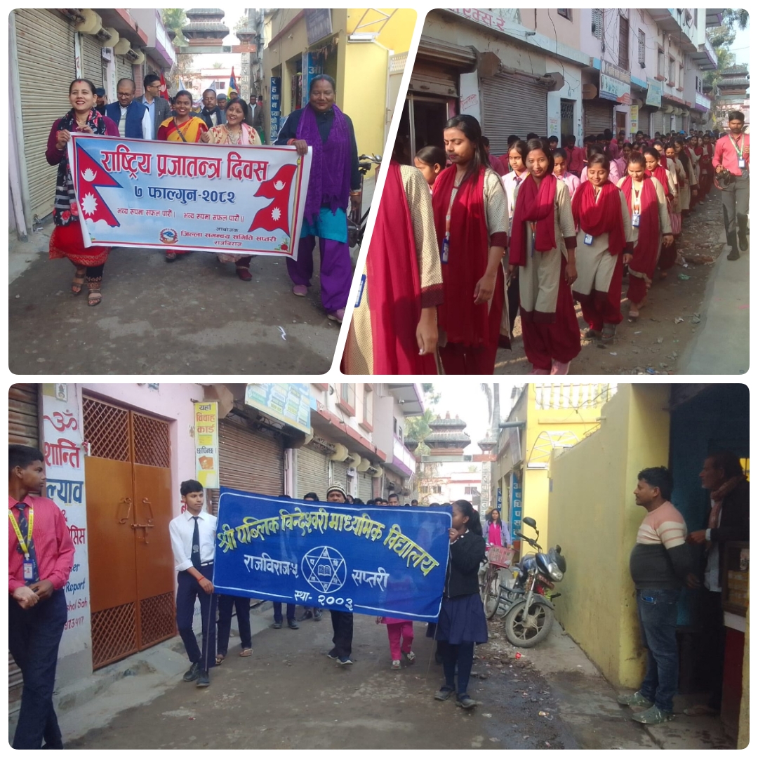 मधेस प्रदेशअन्तर्गत सप्तरी जिल्ला को राजविराज नगरपालिका मा प्रजातन्त्र दिवसको अवसरमा भव्य तथा मार्मिक कार्यक्रम सम्पन्न भएको छ। जिल्ला समन्वय समिति सप्तरी को आयोजनामा सम्पन्न उक्त कार्यक्रममा विभिन्न विद्यालयका विद्यार्थी, शिक्षक, राजनीतिकर्मी, युवा तथा जिल्ला प्रहरी कार्यालय सप्तरी का सुरक्षाकर्मीहरूको उल्लेखनीय सहभागिता रहेको थियो।