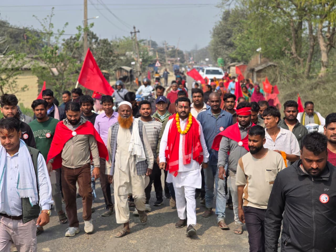 वीरगन्जको जगरनाथपुरमा पुग्दा एमाले उम्मेदवार प्रदीप यादवलाई गरियो भव्य स्वागत