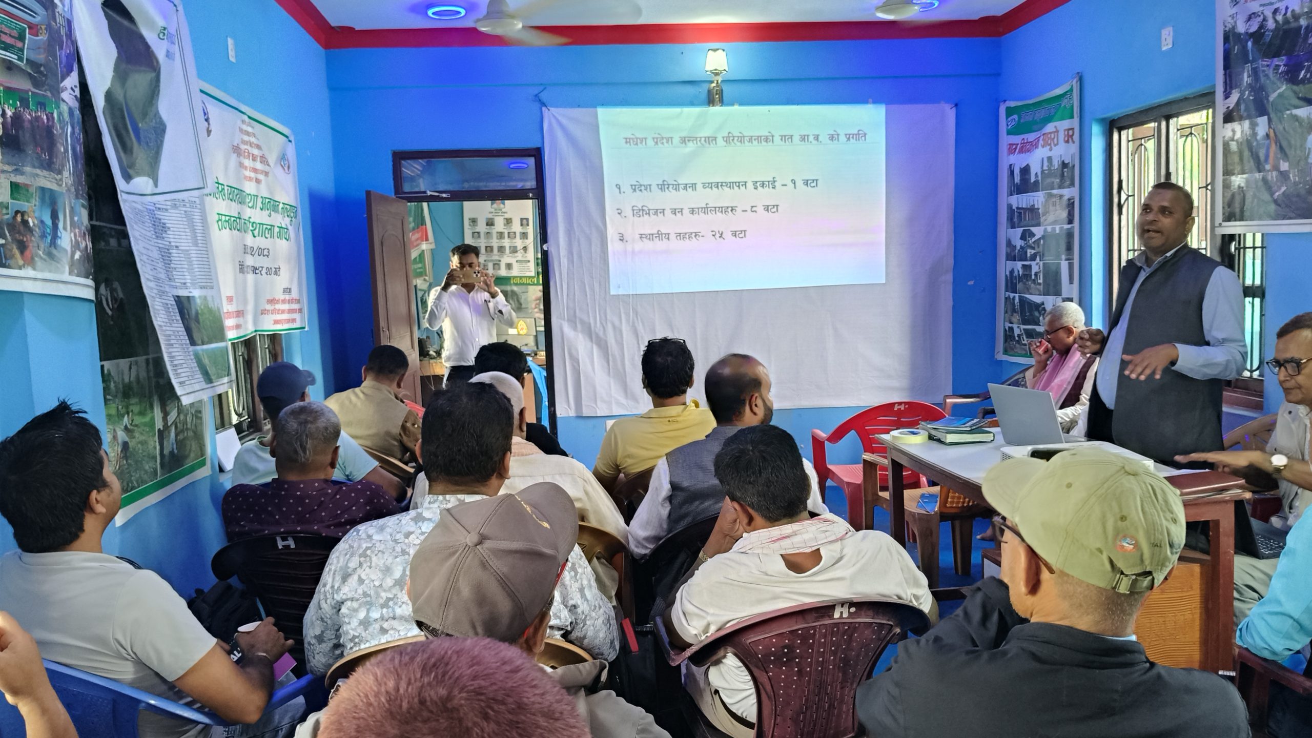 कार्यक्रममा प्रदेश परियोजना संयोजक सुजीत कुमार झा र वन तथा उद्यम विज्ञ बलिराम पण्डितले “समृद्धिका लागि वन परियोजना” को प्रगति, उपलब्धि तथा आगामी कार्ययोजना बारे प्रस्तुति दिनुभएको थियो। सहभागीहरूलाई परियोजनाको कार्यान्वयन प्रक्रिया र प्राप्त उपलब्धिबारे जानकारी गराइएको थियो।