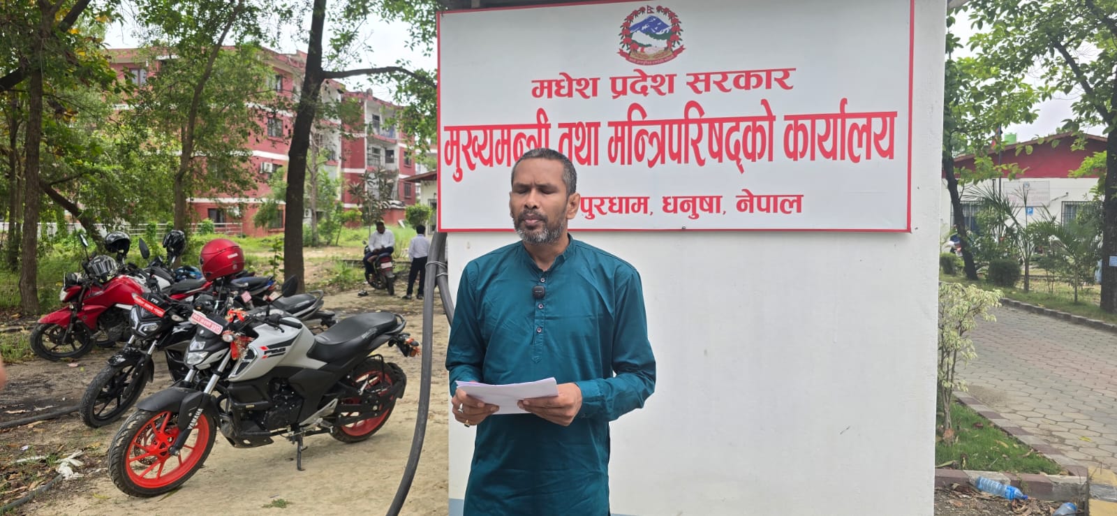 अभियान के अध्यक्ष सूनिल कुमार यादव सभापति गगन थापा के संबोधित करत सार्वजनिक कइल खुल्ला चिट्ठी में मधेस प्रदेश सरकार के भूमिका पर सवाल उठवले बाड़ें। चिट्ठी में आरोप लगावल गइल बा कि मधेस प्रदेश के मुख्यमन्त्री कृष्ण प्रसाद यादव आ वन तथा वातावरण मन्त्री शंकरप्रसाद चौधरी ई मामिला पर मौन धारण कइले बाड़ें। दुनु मंत्री नेपाली कांग्रेस से बनल होखे के कारण सभापति थापा से हस्तक्षेप के माँग कइल गइल बा।
